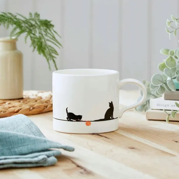 Na pierwszy rzut oka przyciąga wzrok zabawna ilustracja, która przedstawia sylwetki trzech uroczych kotów. Ich sylwetki, uwiecznione na powierzchni kubka, dodają mu niepowtarzalnego charakteru i sprawiają, że codzienne picie ulubionej herbaty czy kawy staje się jeszcze przyjemniejsze.