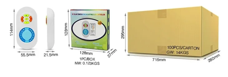 Bezprzewodowy kontroler CCT FUT022 LED z pilotem. Kompaktowy, łatwy w montażu, uniwersalny w zastosowaniu w dowolnych instalacjach. Lekki pilot komunikujący się ze sterownikiem za pomocą fal radiowych zapewnia zasięg do 30m. Sterowanie za pomocą pilota lub aplikacji na smartfona (wymagany mostek Wi-Fi WL-BOX2).