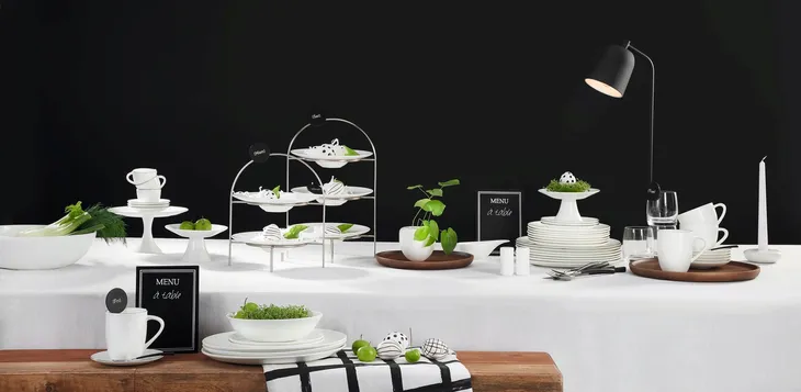 Elementy z kolekcji A'Table Ligne zostały wykończone delikatnym, czarnym paskiem.