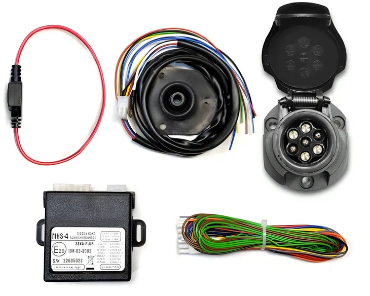 Moduł do podłączenia instalacji elektrycznej haka. Przeznaczenie uniwersalne. Umożliwia podłączenie przyczepy z wtykiem 7 PIN. Posiada homologację. Dostosowany jest do pojazdów z instalacjami 12V.