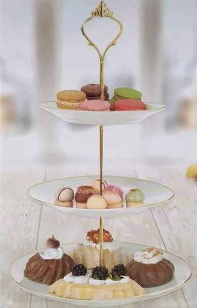 ⭐Trzy Poziomy: Etażerka posiada trzy poziomy, co pozwala na wyeksponowanie różnorodnych przekąsek, deserów czy kanapek, tworząc piękny i stylowy zestaw.