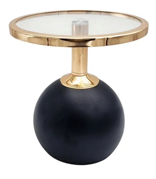 Stylowa patera wykonana z połączenia metalu i szkła to wyjątkowy dodatek do każdego stołu. Solidna, czarna podstawa w formie kuli nadaje jej stabilności i nowoczesnego charakteru, a złote wykończenie dodaje szyku i elegancji. Przezroczysta, szklana taca pięknie eksponuje słodkości, owoce czy przekąski.