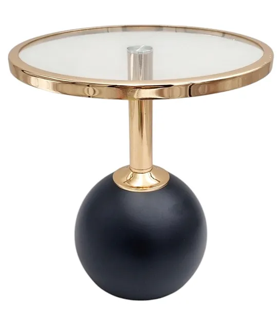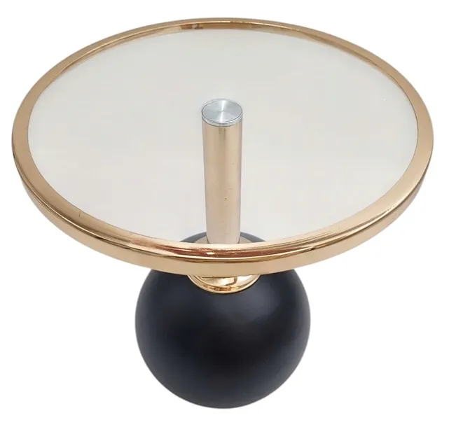 Stylowa patera wykonana z połączenia metalu i szkła to wyjątkowy dodatek do każdego stołu. Solidna, czarna podstawa w formie kuli nadaje jej stabilności i nowoczesnego charakteru, a złote wykończenie dodaje szyku i elegancji. Przezroczysta, szklana taca pięknie eksponuje słodkości, owoce czy przekąski.