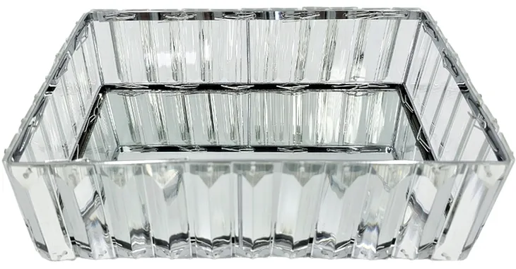 Piękna lustrzana taca z dużymi kryształami. Produkt polecany i chętnie wybierany przez klientów, jako element stołu ze słodyczami i wypiekami na imprezy okolicznościowe. Może również pełnić rolę dekoracyjną w połączeniu ze świecami i pojemnikami dekoracyjnymi. Pęknie wygląda jako dekoracyjna podstawa na kosmetyki i perfumy.