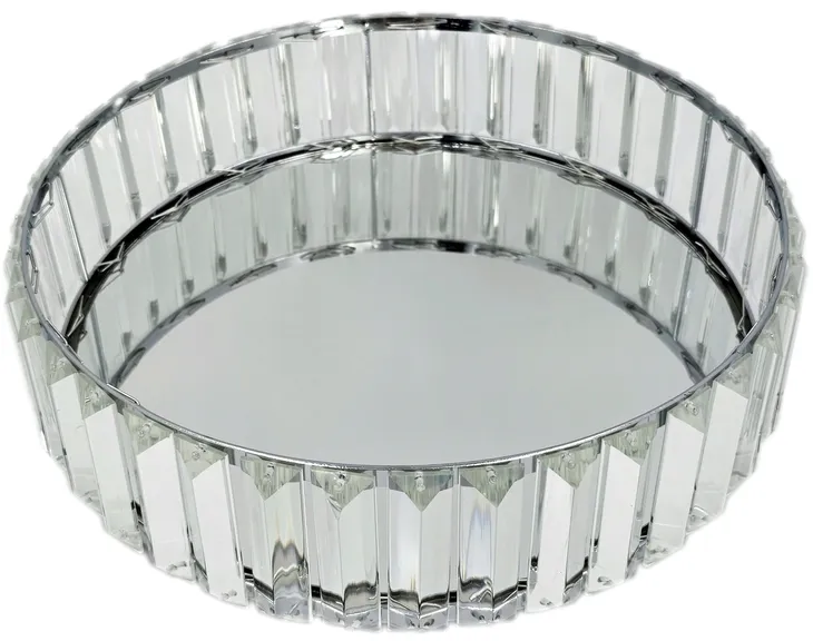 Piękna lustrzana taca z dużymi kryształami. Produkt polecany i chętnie wybierany przez klientów, jako element stołu ze słodyczami i wypiekami na imprezy okolicznościowe. Może również pełnić rolę dekoracyjną w połączeniu ze świecami i pojemnikami dekoracyjnymi. Pęknie wygląda jako dekoracyjna podstawa na kosmetyki i perfumy.