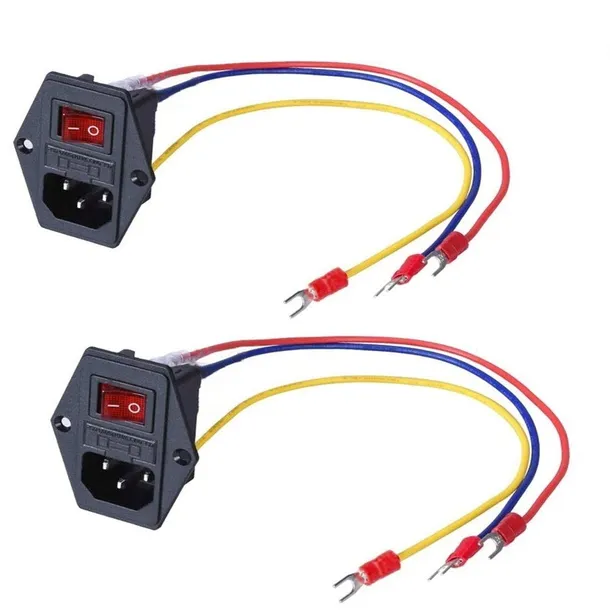 3Dman 15 A 250 V przełącznik kołyskowy gniazdo zasilania wtyczka moduł wlotowy 5 A przełącznik bezpiecznika z 3 szt. okablowanie 18 AWG 3-pinowe IEC320 C14