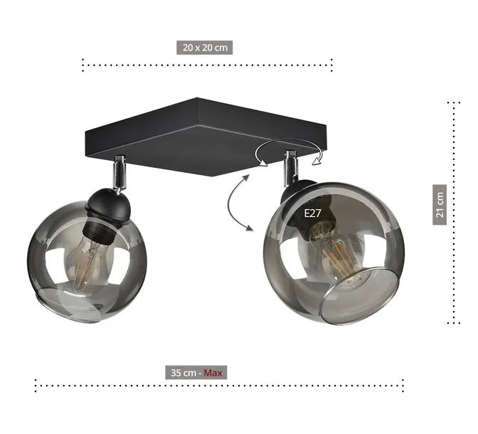 - Źródło światła: E-27 - zalecane LED lub świetlówki kompaktowe